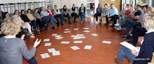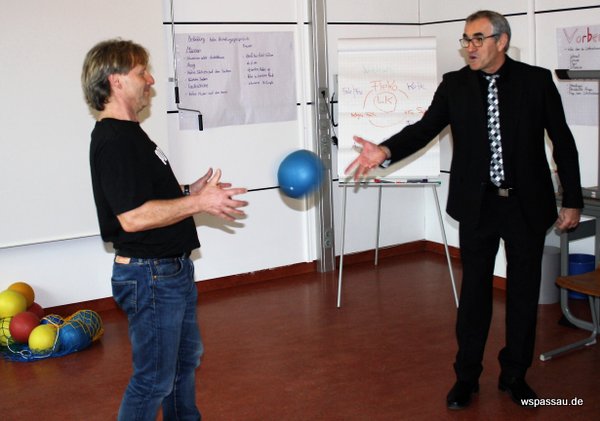 Das Kollegium der Staatlaichen Wirtschaftsschule Passau veranstaltete einen pädagogischen Halbtag mit Schwerpunkt Lehrergesundheit und lernte unter Anleitung der Life Kinetik-Trainerin Angelika Höltl ein breit abgestimmtes Bewegungsprogramm kennen, das nicht nur aktiv die Gesundheit fördert, sondern gleichzeitig die geistige Mobilität und Flexibilität verbessert. Durch spezielle koordinative, visuelle, auditive und kognitive Aufgaben für den Körper wird das Gehirn veranlasst, neue Verbindungen (Synapsen) zwischen den Gehirnzellen zu schaffen. Je mehr Vernetzungen im Gehirn angelegt sind, desto höher ist die Leistungsfähigkeit. So kann man das Potenzial mehr und mehr ausbauen. Körperlich ist das Training kaum belastend. Doch das abgestimmte Bewegungsprogramm hält nicht nur gesundheitlich fit, sondern fördert die geistige Mobilität und Flexibilität. Außerdem macht Life Kinetik jede Menge Spaß!
