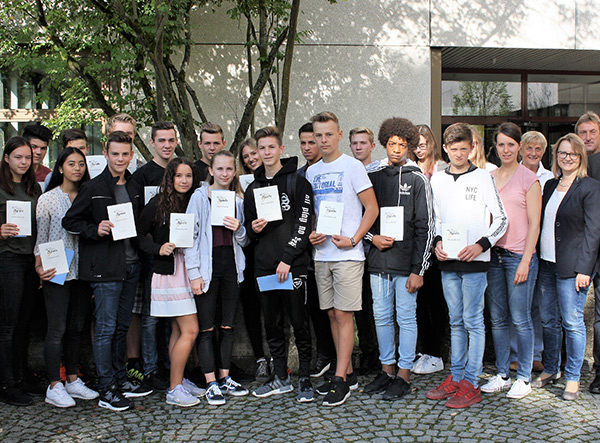 Zum Schuljahresausklang versammelten sich alle Lehrkräfte und Schüler in der Aula der Schule, um hier die tollen Leistungen der Sportlerinnen und Sportler gebührend zu ehren. Schulleitung und Sportlehrkräfte freuten sich, die Urkunden sowie verschiedene Sachpreise und Gutscheine übergeben zu können.