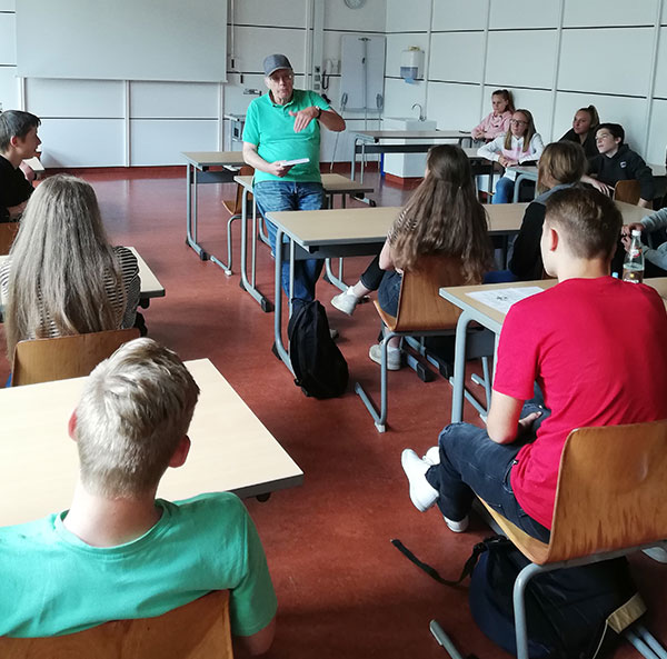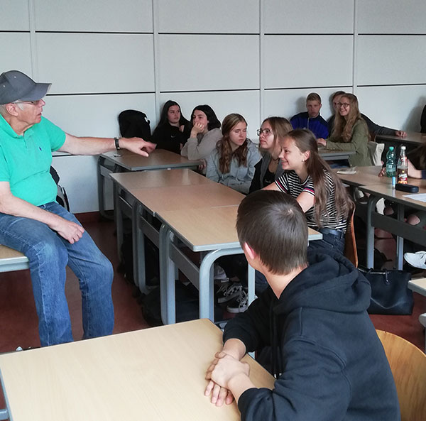 Geschichte aus erster Hand: Dies erlebten die Schüler der 9. und 10. Klassen während des Besuchs des DDR-Zeitzeugen Rainer Dellmuth. Im Rahmen seiner Tätigkeit als Referent für politische Bildung erzählte der ehemalige Stasi-Gefangene von seinem Leben in der SED-Diktatur und seinen Erlebnissen in verschiedenen DDR-Haftanstalten. Hier verbrachte er mehrere Jahre, unter anderem wegen „versuchter Republikflucht und staatsgefährdender Hetze“. Eindringlich, aber auch humorvoll-sarkastisch, vermittelte er den Schülern die physischen und psychischen Foltermethoden der Stasi. „Die haben mir meine Jugend genommen“, so das bittere Fazit Dellmuths. Umso mehr appelliert er an die Schüler, die Demokratie zu schützen, denn „in einer Demokratie zu leben ist nicht selbstverständlich“.