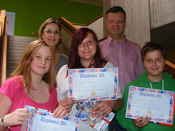 45 Schüler und Schülerinnen der beiden 7. Klassen der Staatlichen Wirtschaftsschule Passau nahmen im Mai am diesjährigen „Big Challenge“ teil. Und das nicht ohne Erfolg. Die drei Schulbesten sind von links Tereza Kubakova, Nadine Welke (beide 7a) und Maximilian Oberneder (7b). Hervorzuheben ist dabei Nadines hervorragende Leistung, denn sie belegte bayernweit Platz 13 von insgesamt 3028 Teilnehmern und bundesweit Platz 59 von 16.682 Teilnehmern. Aber was ist „The Big Challenge“ – zu Deutsch „die große Herausforderung“ – eigentlich? Dabei handelt es sich um einen Englischtest bestehend aus 54 Fragen zu den Bereichen Wortschatz, Aussprache, Grammatik oder Landeskunde, zu denen jeweils aus vier Antworten die richtige ausgewählt werden muss. Der Big Challenge findet außer in Deutschland auch noch in Frankreich, Österreich und Spanien statt. Die Teilnahme hat sich für alle gelohnt, da es nicht nur zahlreiche Sachpreise für die Besten gab, sondern jeder Teilnehmer eine Urkunde und ein kleines Geschenk bekam.