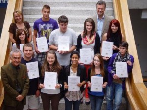 Der Schulleiter, Herr OStD Dieter Schönbuchner freute sich, den erfolgreichen Kandidatinnen und Kandidaten der Klassen 9 und 10Z die Urkunde überreichen zu können.
