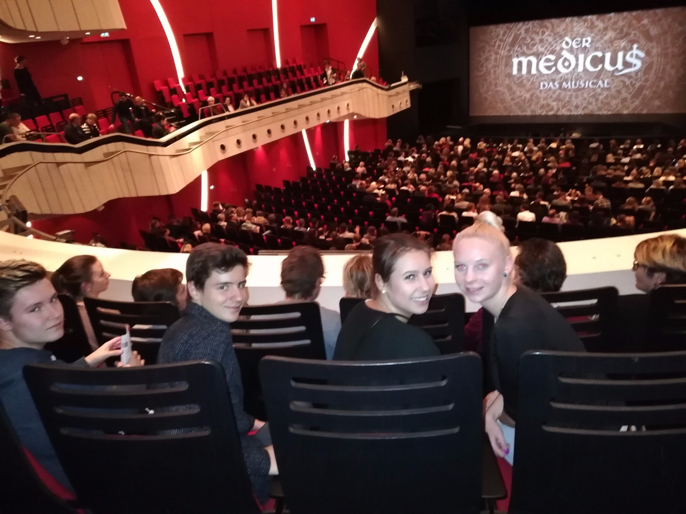 Nach einer ausgiebigen Shoppingtour in der Stadt stand dann am Abend das Musical „Der Medicus“ im Deutschen Theater auf dem Programm. Für viele war dies der erste Besuch in einem Theater und sie wurden nicht enttäuscht. Das Musical, das nach der Romanvorlage des Weltbestsellers von Noah Gordon inszeniert wurde, begeisterte durch flotte Tanzeinlagen, charismatische Sänger und ein buntes Bühnenbild, das die Zuschauer in das Mittelalter und in orientalische Welten eintauchen ließ. „Wahnsinn, was die Schauspieler da live auf der Bühne leisten“, so die Schüler einhellig. Fast drei Stunden dauerte die Reise des Medicus, die am Ende mit dem begeisterten Applaus aller Theaterbesucher belohnt wurde – und auch unsere Schüler klatschten kräftig mit.