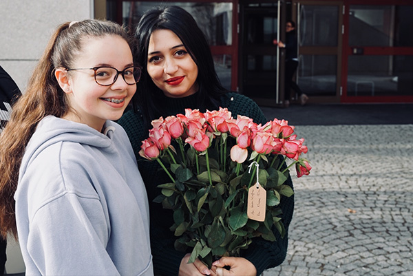 dazu kann der 14. Februar zum Anlass genommen werden. Am Valentinstag veranstaltete die SMV der Wirtschaftsschule Passau eine Rosenaktion, bei der man seinen Liebsten eine Rose mit Karte schicken konnte. Die Schülersprecher verteilten diese im Laufe des Vormittags. So zauberten die duftenden Geschenke vielen Schülern und Lehrern ein Lächeln auf die Lippen. Ach, könnte doch jeden Tag Valentinstag sein …